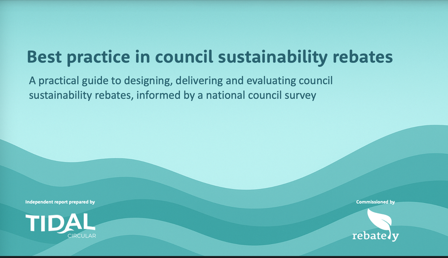 This report was commissioned by Rebately and independently researched and written by Tidal Circular to support Australian local governments in designing, delivering, and evaluating sustainability rebate programs that are effective, defensible, and aligned with council objectives. The work responds to a lack of consistent data across the sector on the current state of council sustainability rebates, including barriers and opportunities, and a need identified by councils for clearer guidance on what “good” looks like in practice, how to interpret performance beyond headline metrics, and how to design rebate programs that reflect behavioural, equity, and market realities — not just financial outcomes.